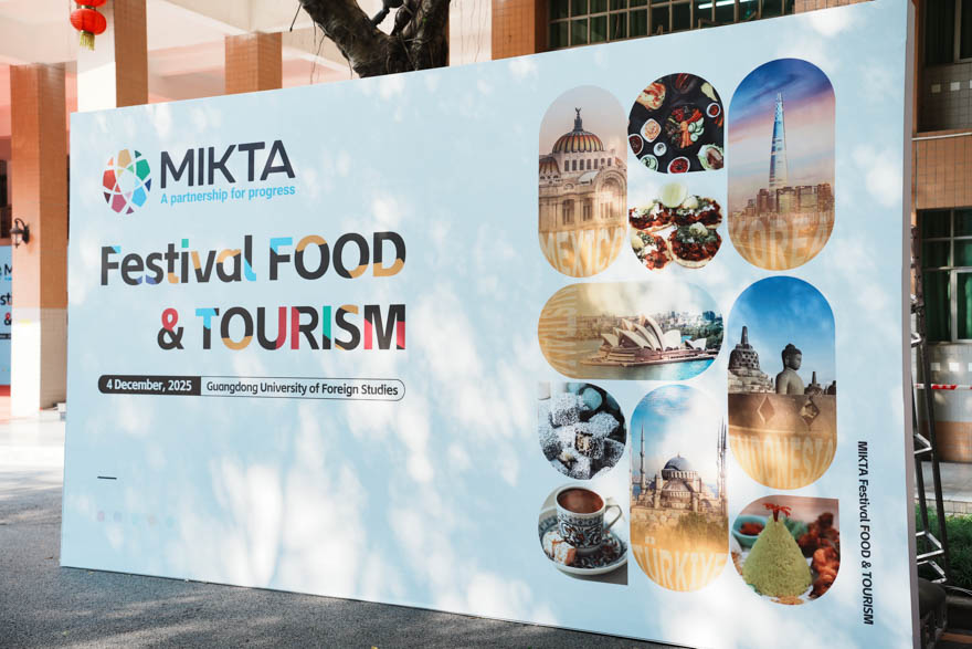 本網訊 冬日廣外,暖意融融。12月4日下午,由墨西哥、印度尼西亞、韓國、土耳其、澳大利亞五國駐廣州總領事館聯合主辦、我校承辦的第五屆MIKTA美食旅游節在白云山校區主校道隆重舉行。本次活動以“美食為媒,文化共鑒”為主題,通過美食品鑒、民俗展演、互動體驗等多元形式,生動呈現MIKTA合作框架下的文化多樣性,為中國與五國青年深化交流、推動多邊主義與文明互鑒搭建起一座橋梁。韓國駐廣州總領事姜相旭、墨西哥駐廣州總領事Daniel Dominguez、印度尼西亞駐廣州總領事Ben Perkasa Drajat、土耳其駐廣州總領事Adnan Hayal、澳大利亞駐廣州副領事林陽、省外辦代表張詩、葛瑤及我校相關部處、學院的領導和代表出席了本次活動。廣外副校長申明浩作開幕致辭。