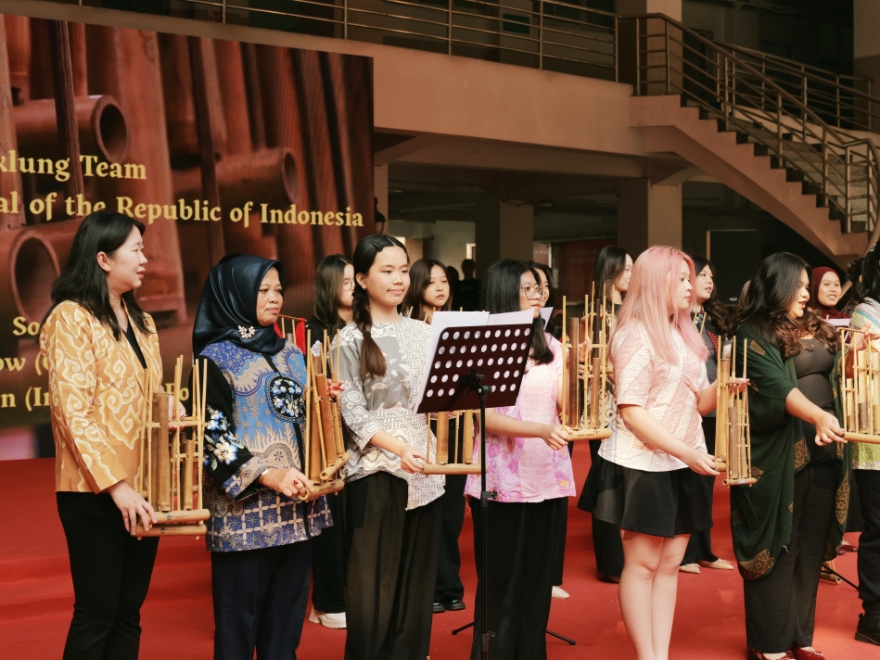 印度尼西亞留學生們攜手演繹傳統竹制樂器昂格隆,這一被聯合國教科文組織認定為人類非物質文化遺產的樂器,以“一人一音、多 人協作”的獨特方式,奏響兩首經典曲目,樂聲清脆悅耳。身著酷炫黑衣的韓國舞者則用三支律動感十足的K-pop舞蹈點燃全場,利落的舞姿、整齊的動作與富有沖擊力的編排,將現場氣氛一次次推向高潮。