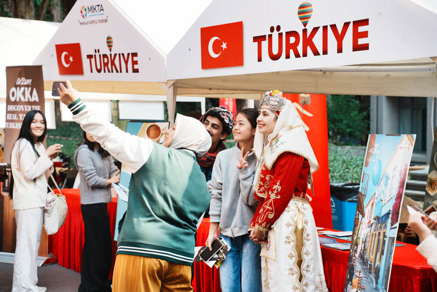 活動期間,師生們手持各國美食穿梭于展位之間,或駐足欣賞民俗表演,或與留學生暢談飲食文化。在馥郁的香氣與熱烈的掌聲漸漸散去之后,五國文化的交融與青年之間的友誼仍在延續。來自亞非學院的陳可韾、周栩潔在體驗了韓國攤位的豐富美食后,又被土耳其歌舞表演深深吸引。她們表示:“土耳其的歌舞表演浪漫又震撼,中獎獲得的紅酒、日歷、保溫杯等特色禮品更是滿滿的驚喜”。印度尼西亞留學生魏梅花分享了自己的故事。從小學習中文的她對中華文化充滿熱愛:“這樣的文化節讓我們有機會近距離交流,既能展示印尼文化,也能深入了解中國。”在她看來,美食節不僅是展示自我的舞臺,更是建立友誼的起點。