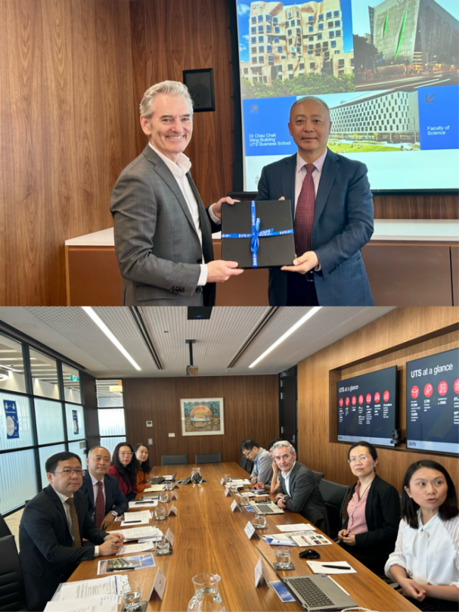 楊勵一行首先訪問悉尼科技大學(UTS)。該校副校長英尼斯·愛爾蘭(Innes Ireland)對楊勵一行的到訪表示熱烈歡迎,并簡要介紹了悉尼科技大學概況。悉尼科技大學是澳大利亞悉尼市的公立研究型大學,同時是全球排名第11位的年輕大學,連續四年蟬聯澳大利亞年輕大學榜首。英尼斯表示,期待兩校能推動研究領域深度合作,拓展師生互訪渠道,共享優質學術資源。楊勵表示,廣外始終高度重視對外交流與合作,期待雙方能夠進一步開拓合作空間,共同推動兩校在人才聯合培養、學術交流等領域建立更為緊密的合作關系。