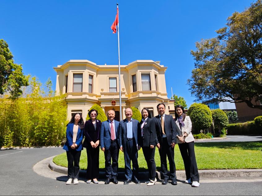 在澳大利亞訪問期間,代表團還拜訪了中國駐墨爾本領事館。楊勵向領事館介紹了廣外的發展歷程、辦學特色,并希望通過領事館推動廣外與澳大利亞高校的合作。總領事房新文和文化教育參贊丁莉會見了代表團,對廣外積極開展對外合作表示肯定,并希望雙方開展針對性合作,促進廣外培養更多國際化高素質人才。
