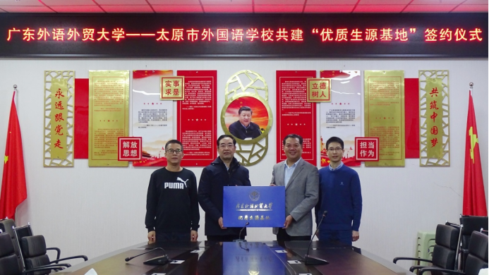 2月9日,我校與太原市外國(guó)語學(xué)校共建優(yōu)質(zhì)生源基地簽約和授牌儀式在太原市外國(guó)語學(xué)校舉行。我校教務(wù)部部長(zhǎng)、招生辦主任陳金詩,太原市外國(guó)語學(xué)校校長(zhǎng)武翻旺、教務(wù)處主任史震,我校校友、“牛津女孩”劉芳彤出席活動(dòng)并舉行座談。