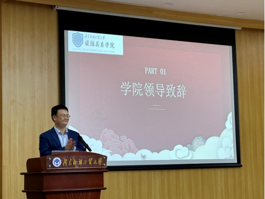 國際政治系主任范洪穎副教授向來訪師生介紹我校我院的基本情況