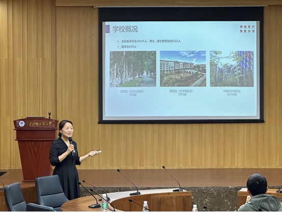 隨后,范洪穎進一步向來訪師生介紹廣外的基本情況、辦學定位、辦學特色以及國際化特點,并就我院開設的三個本科專業(yè)的培養(yǎng)方案以及學科特點展開詳細的說明。