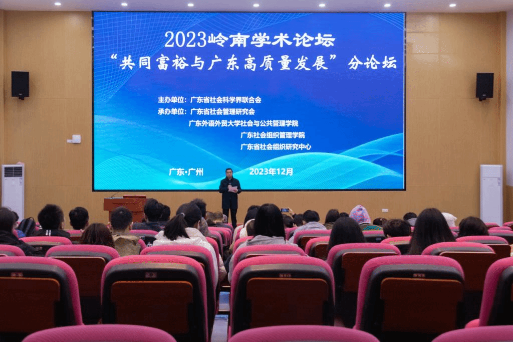 本網訊 12月23至24日,由廣東省社會科學界聯合會主辦,廣東省社會管理研究會、廣東外語外貿大學社會與公共管理學院廣東社會組織管理學院、廣東省社會組織研究中心聯合承辦的2023嶺南學術論壇“共同富裕與廣東高質量發展”分論壇在我校舉辦。來自中山大學、廈門大學、東南大學、華東師范大學、廣西大學、華南師范大學、廣東外語外貿大學、中共廣東省委黨校、廣東省社會科學院、廣東省鄉村發展協會等省內外高校、黨校、科研院所和社會組織近100名專家學者參會。