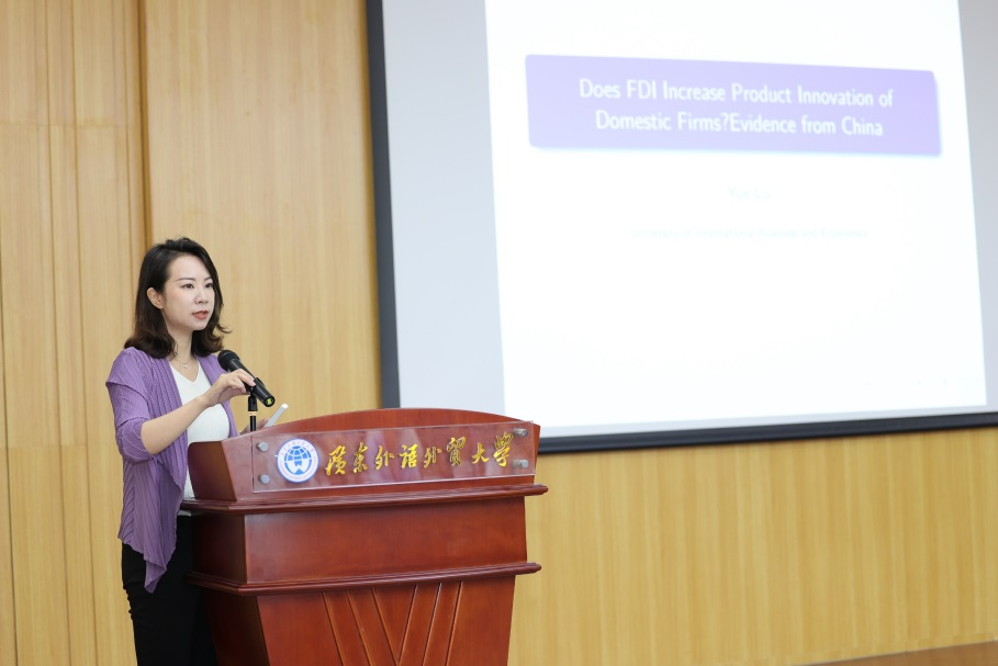 對外經濟貿易大學全球創新與治理研究院執行院長、協作組青年論壇副秘書長呂越教授的演講題目是“Does FDI Increase Product Innovation of Domestic Firms? Evidence from China”,呂教授分享了關于FDI如何從水平效應和垂直效應影響國內企業產品創新的研究。研究表明,FDI進入上游企業對國內企業的產品范圍產生了積極影響,而FDI進入下游產業對其產品范圍產生了負面影響。