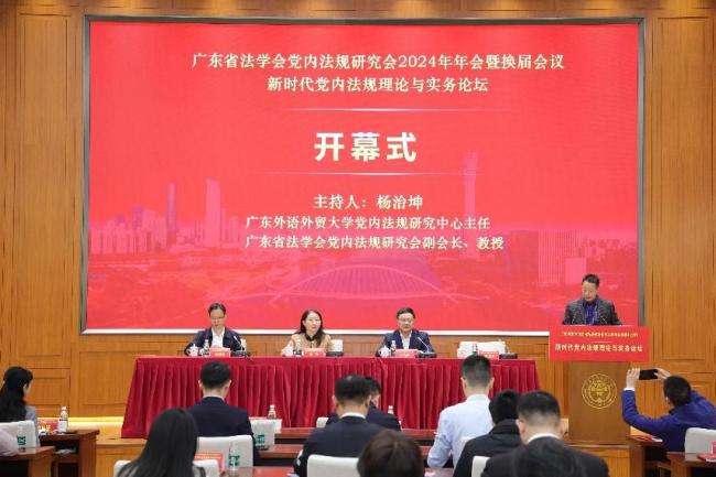 本網訊 2024年12月1日,“新時代黨內法規理論與實務論壇”——廣東省法學會黨內法規研究會2024年年會暨換屆會議在廣東外語外貿大學召開。本次年會由廣東省法學會主辦,廣東外語外貿大學黨內法規研究中心、區域法治研究院、廣東法治研究院承辦。來自廣東省法學會、廣東省委辦公廳文電法規處、中山大學、暨南大學、廣東外語外貿大學、中共廣東省委黨校、華南師范大學、廣州大學、深圳大學、廣東工業大學等單位、高校70余位黨內法規理論研究與實務工作者參會。