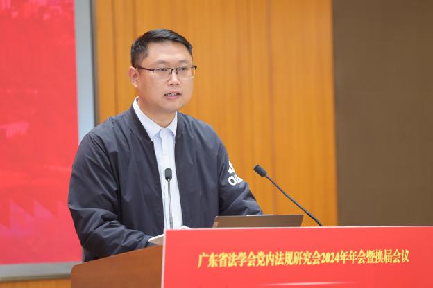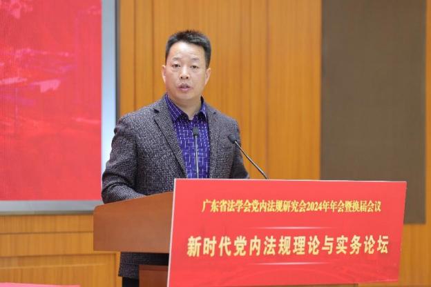 石佑啟教授代表廣東外語外貿大學向出席會議的領導、專家、學者表示熱烈歡迎,向廣東省法學會、省委辦公廳文電法規處、省教育廳、省社科聯等單位長期以來的支持表示衷心感謝。他指出,加強黨內法規制度體系建設是全面從嚴治黨、依規治黨的必然要求,在進一步全面深化改革中健全全面從嚴治黨體系是黨的二十屆三中全會決定提出的重要任務。黨內法規研究會自成立以來,在省法學會的正確領導下,在省委辦公廳文電法規處的大力支持下,始終堅持以習近平新時代中國特色社會主義思想為指導,牢牢把握正確的政治方向,通過組織研討會、撰寫咨詢報告等形式,推動黨內法規理論研究進一步深化,為廣東省黨內法規理論研究和制度發展做出了應有的貢獻。面對國內外復雜多變的形勢,研究會要充分認識到依規治黨、全面從嚴治黨在推進中國式現代化中的重要地位和作用,不斷提升研究水平和應用能力,以高度責任感和使命感,在黨內法規理論研究和制度創新實踐中展現新擔當和新作為。